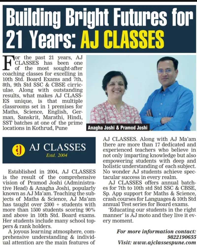 Want to discover how we can shape your child’s academic journey and success? We are eager to hear from you and help you understand what we have to offer. Join a community that values quality education. Our students come from across Pune city, including Kothrud, Warje, Karve Nagar, Bavdhan, Sinhagad Road, Paud Road, Deccan, Shivaji Nagar, Erandwane, and nearby areas — a testament to the trust and results we deliver.